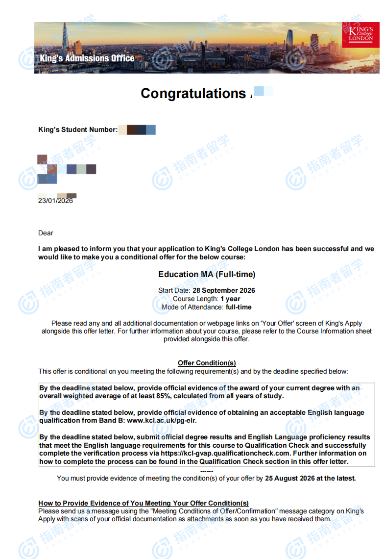 倫敦大學(xué)國(guó)王學(xué)院教育學(xué)文學(xué)碩士研究生offer一枚
