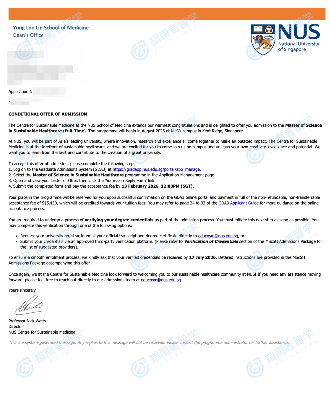 新加坡國立大學(xué)可持續(xù)醫(yī)療保健理學(xué)碩士研究生offer一枚