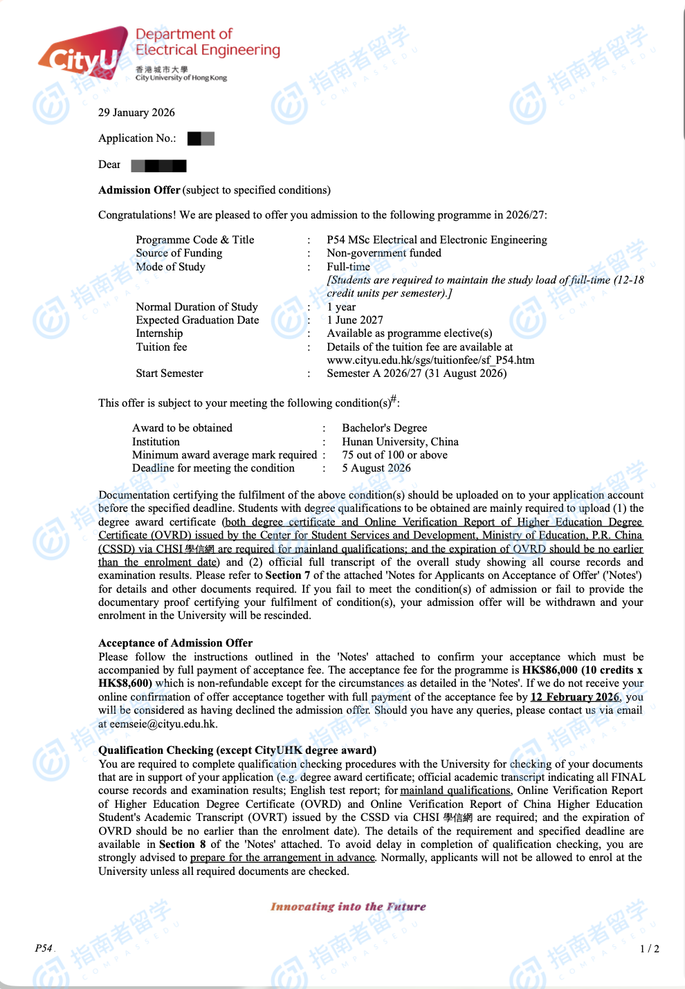 香港城市大學電機與電子工程學理學碩士研究生offer一枚