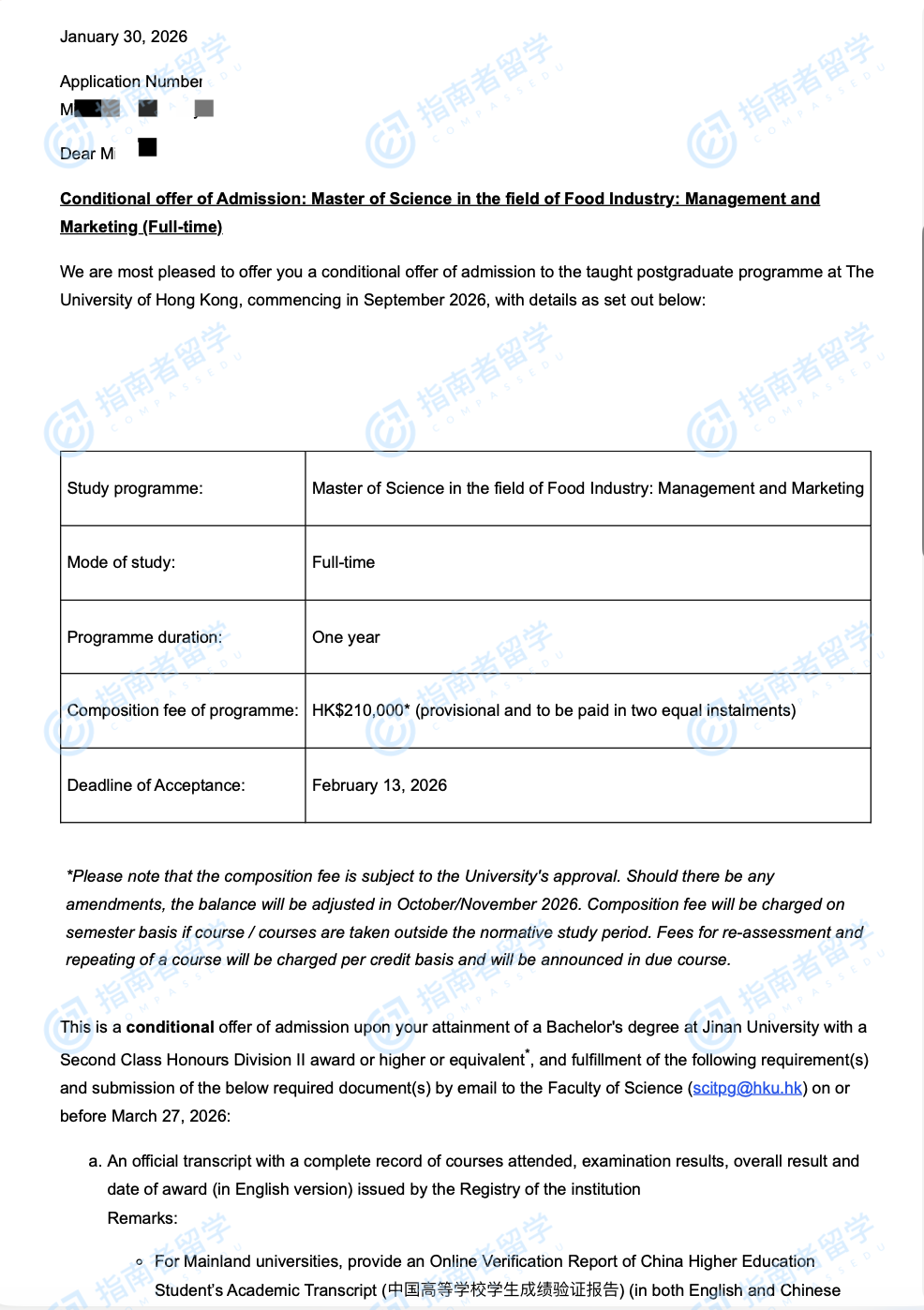 香港大學(xué)食品工業(yè):管理與市場(chǎng)營銷理學(xué)碩士研究生offer一枚