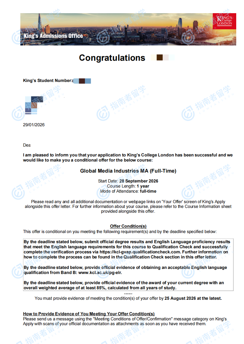 倫敦大學國王學院全球媒體產(chǎn)業(yè)碩士研究生offer一枚