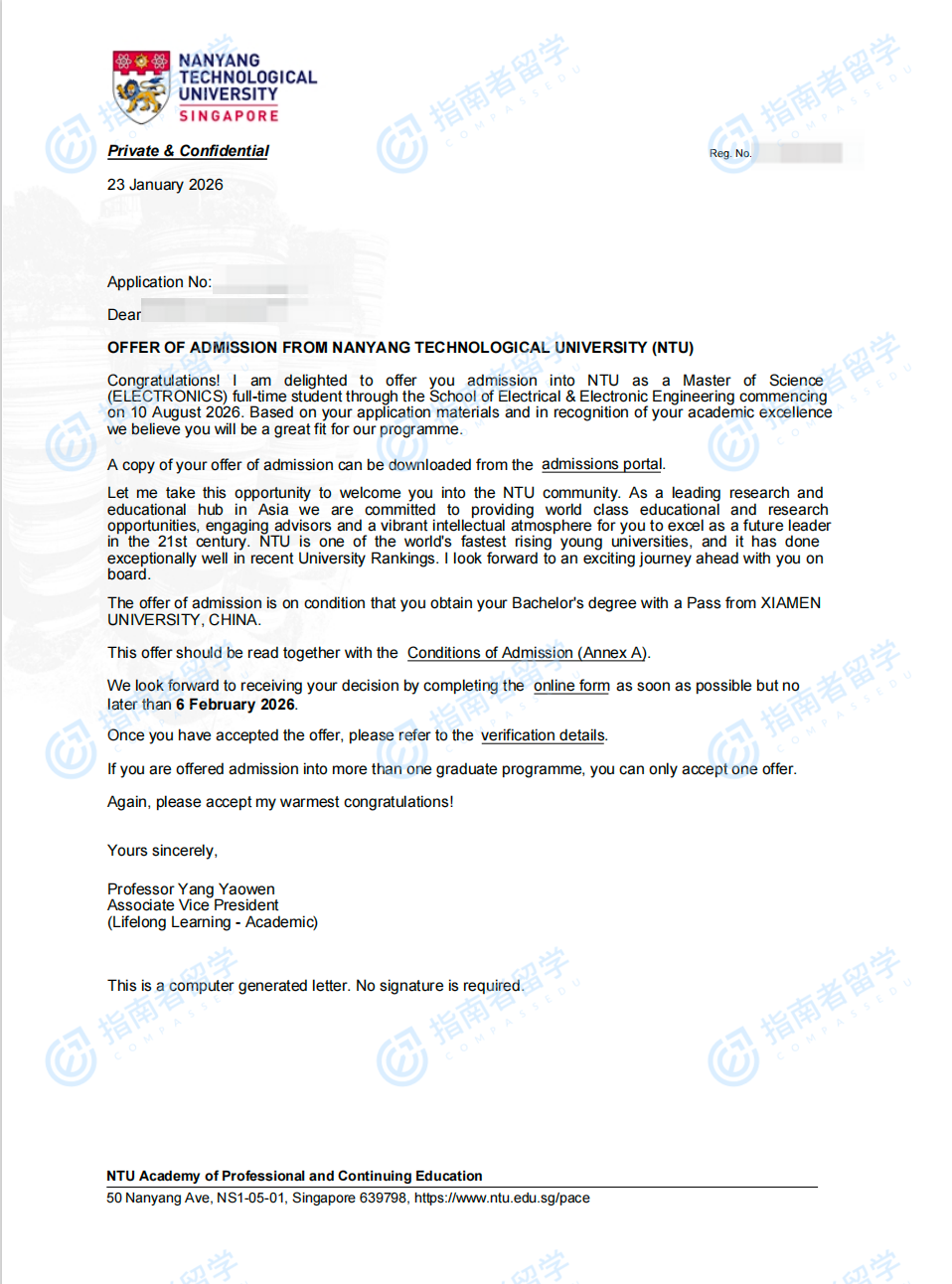 南洋理工大學機器人與智能系統(tǒng)理學碩士研究生offer一枚