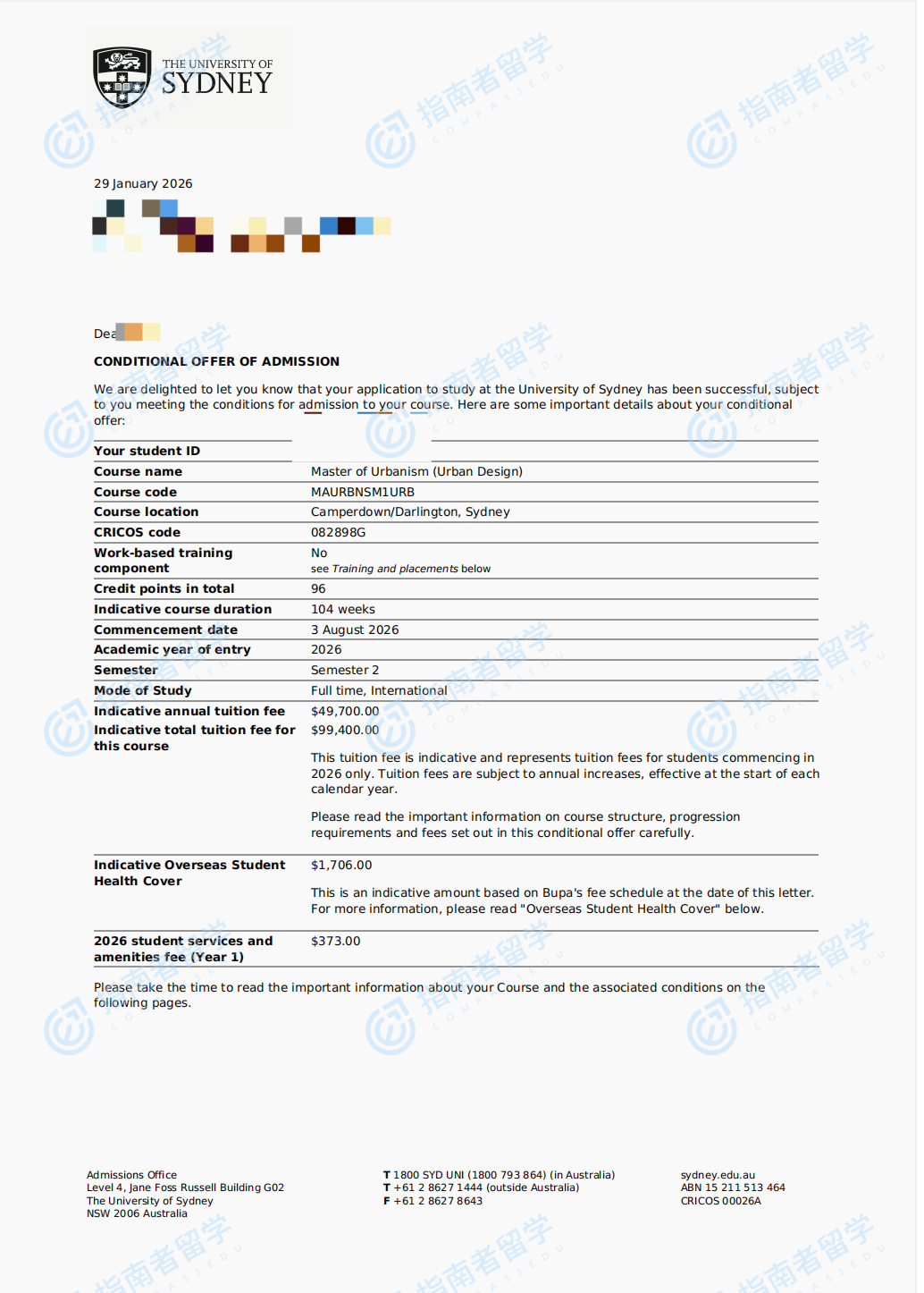 悉尼大學(xué)城市化碩士(城市設(shè)計)研究生offer一枚