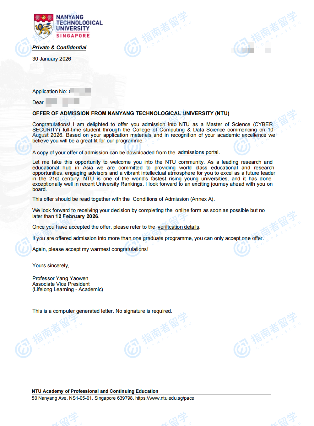 南洋理工大學(xué)網(wǎng)絡(luò)安全理學(xué)碩士研究生offer一枚