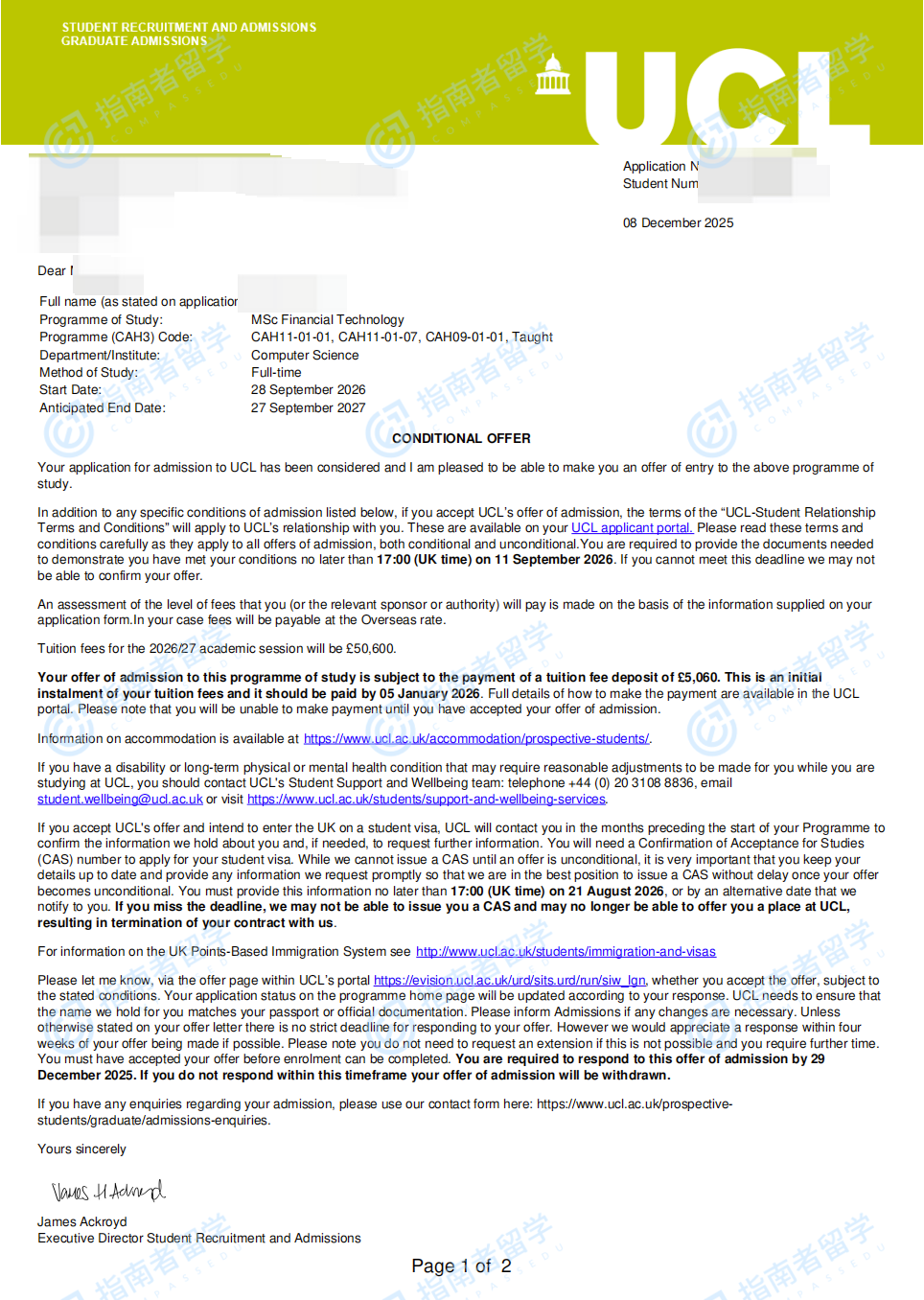 倫敦大學(xué)學(xué)院金融科技理學(xué)碩士研究生offer一枚