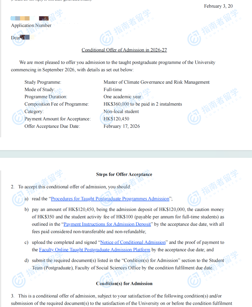 香港大學氣候治理與風險管理碩士研究生offer一枚