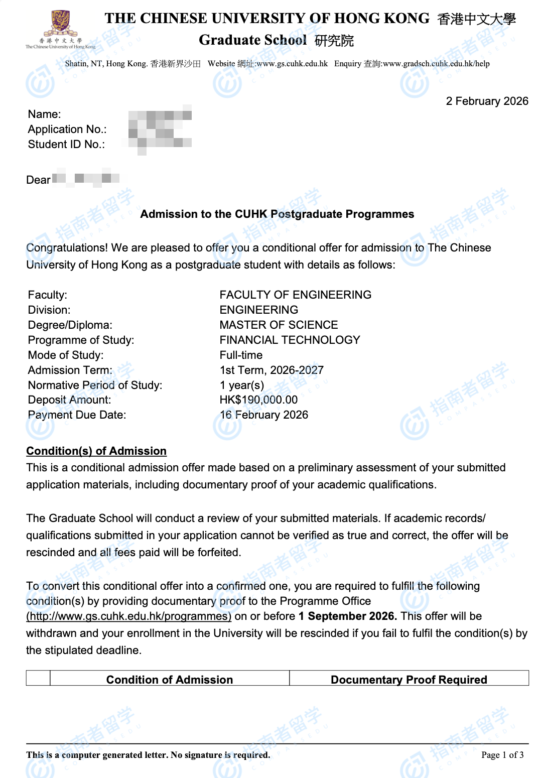 香港中文大學(xué)金融科技理學(xué)碩士研究生offer一枚