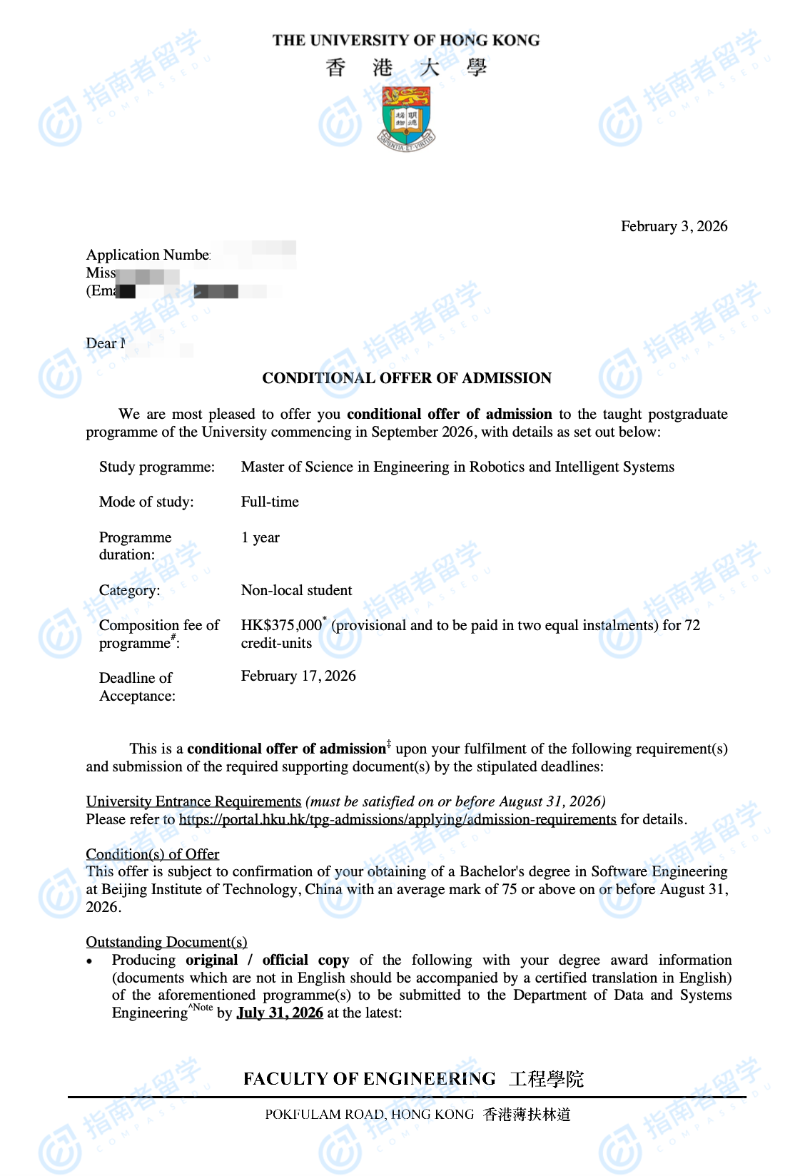 香港大學(xué)機(jī)器人與智能系統(tǒng)(工程)理學(xué)碩士研究生offer一枚