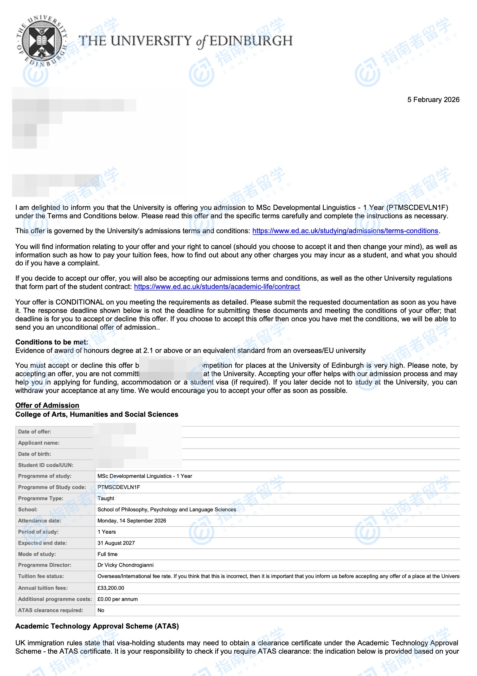 愛丁堡大學(xué)發(fā)展語言學(xué)理學(xué)碩士研究生offer一枚