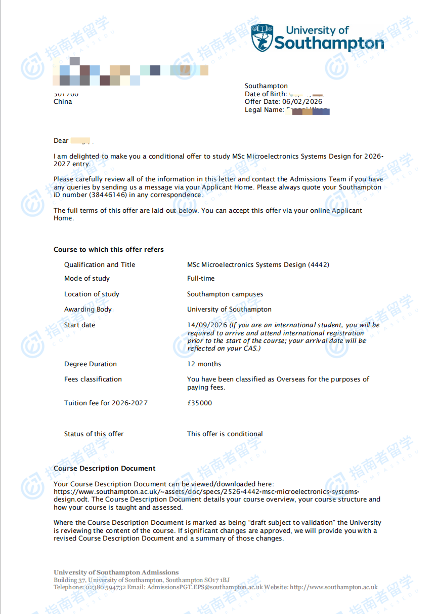 南安普頓大學(xué)電子工程方向錄取報(bào)告