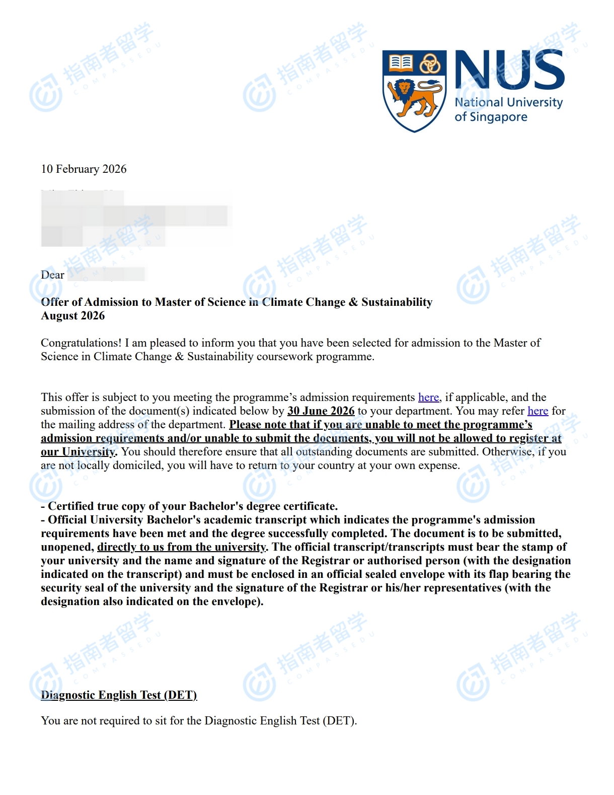 新加坡國立大學(xué)氣候變化與可持續(xù)發(fā)展理學(xué)碩士研究生offer一枚