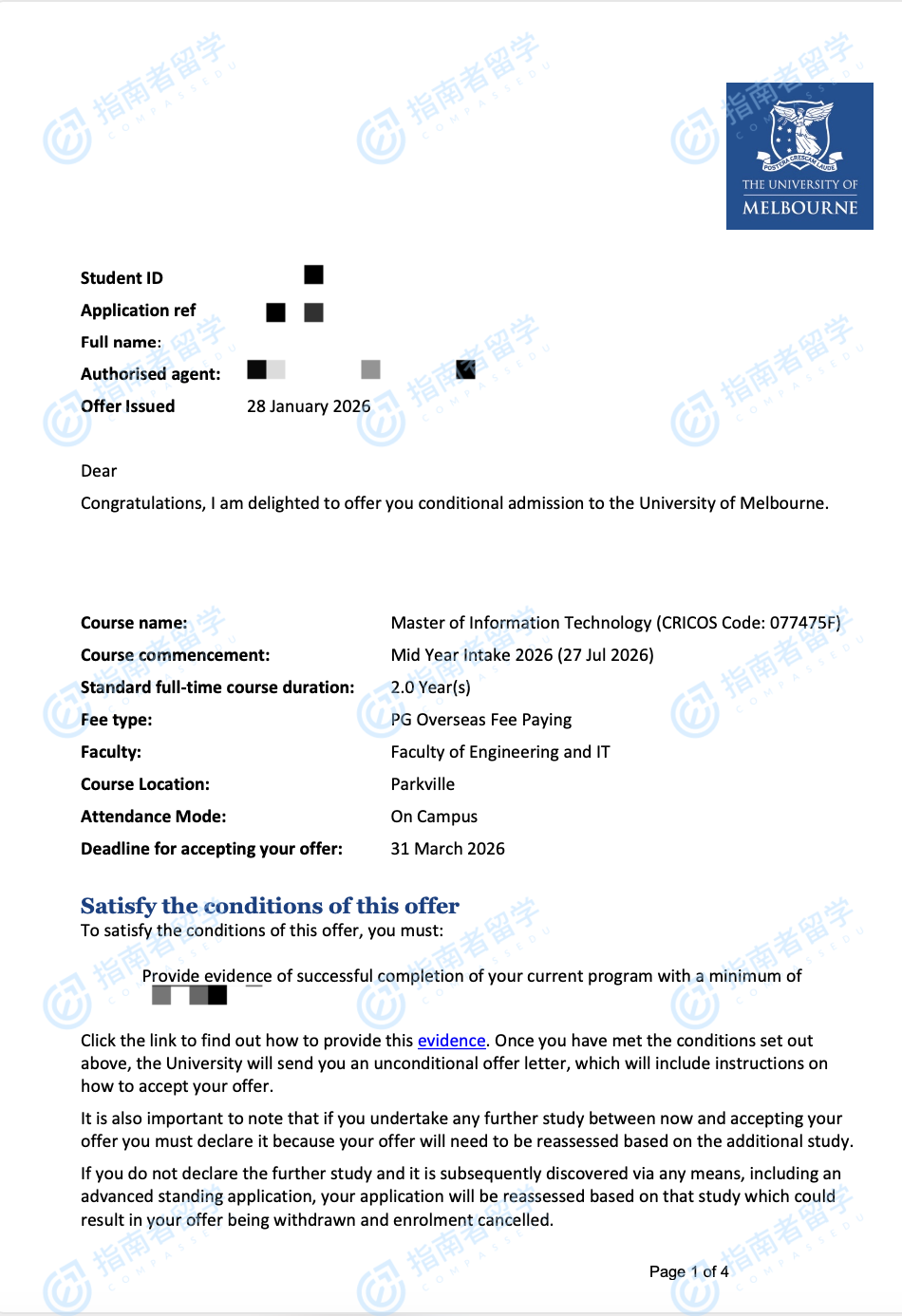 墨爾本大學信息技術(shù)碩士研究生offer一枚
