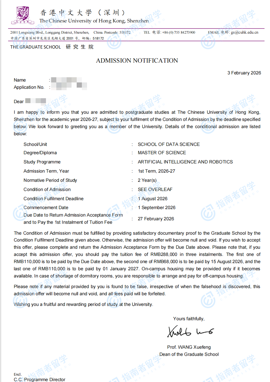 香港中文大學(xué)計(jì)算機(jī)與信息工程理學(xué)碩士(CUHK-Shenzhen)研究生offer一枚