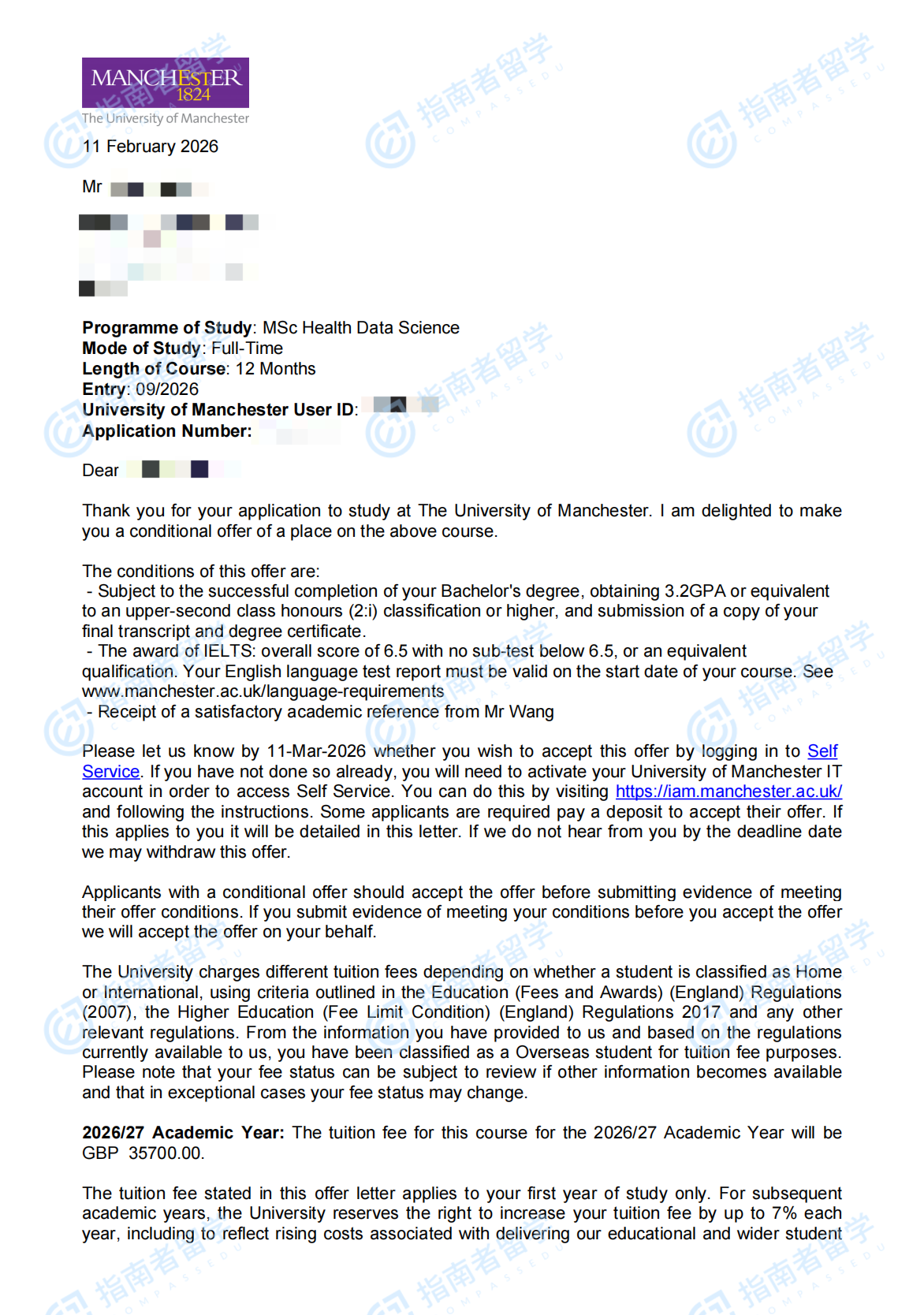 曼徹斯特大學健康數(shù)據(jù)科學理學碩士研究生offer一枚