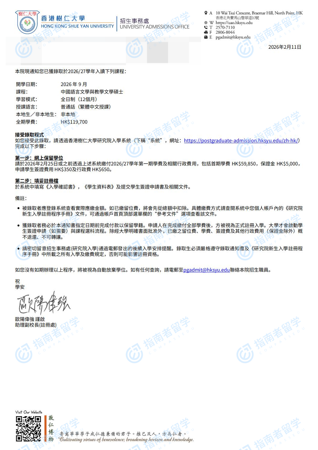 香港樹仁大學(xué)中國(guó)語(yǔ)言文學(xué)與教學(xué)文學(xué)碩士研究生offer一枚