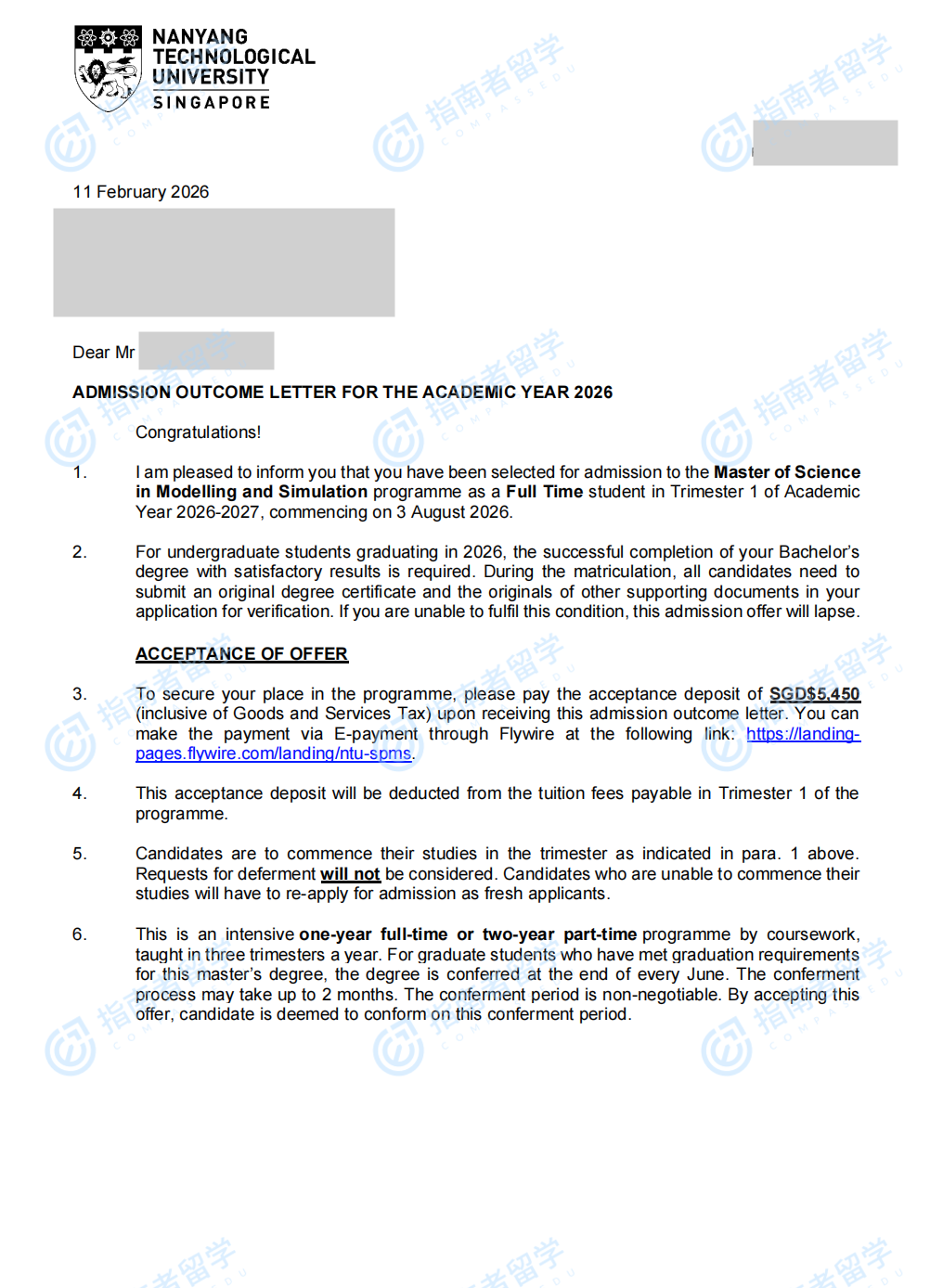 南洋理工大學(xué)建模與仿真理學(xué)碩士研究生offer一枚