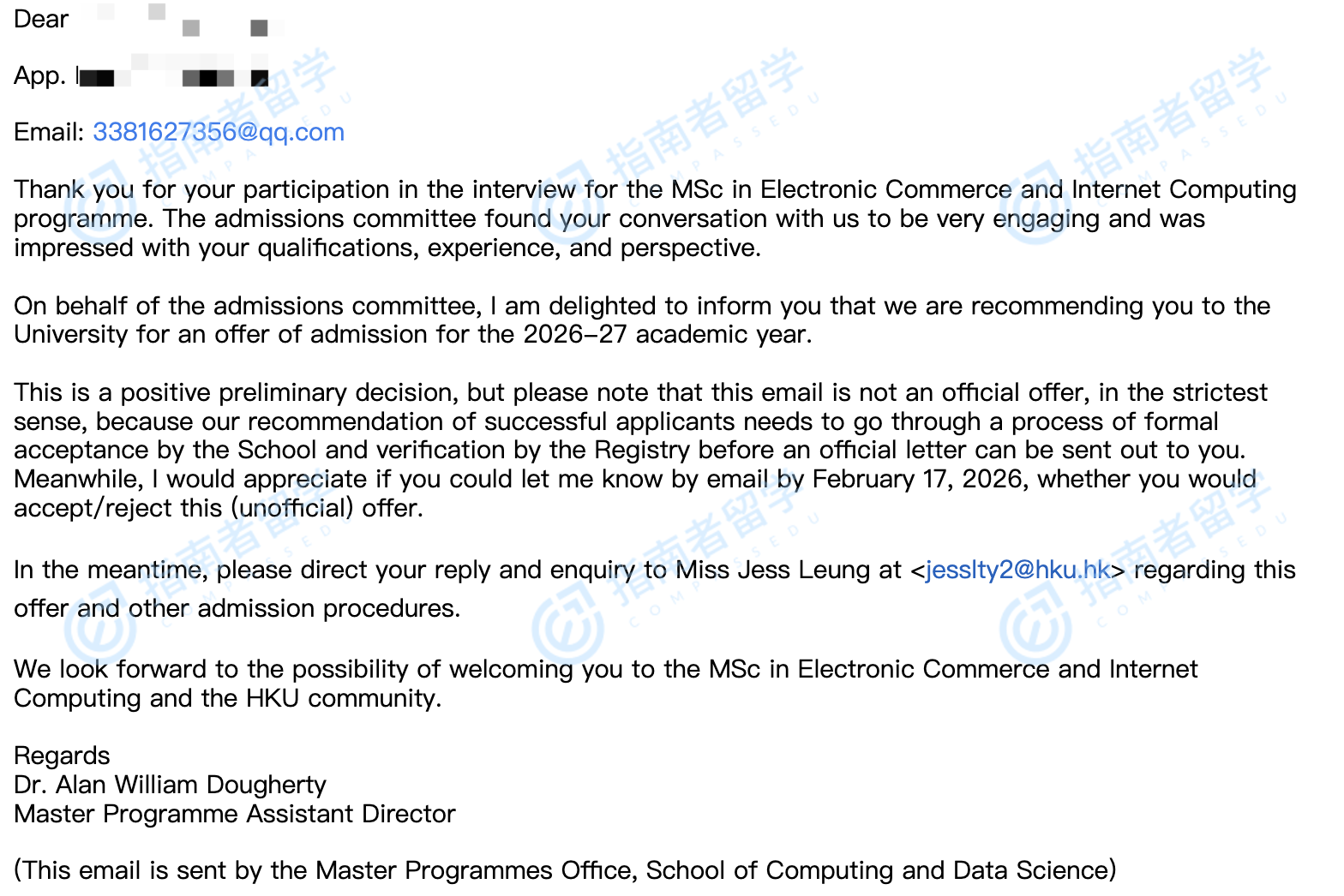 香港大學(xué)電子商貿(mào)及互聯(lián)網(wǎng)工程理學(xué)碩士研究生offer一枚