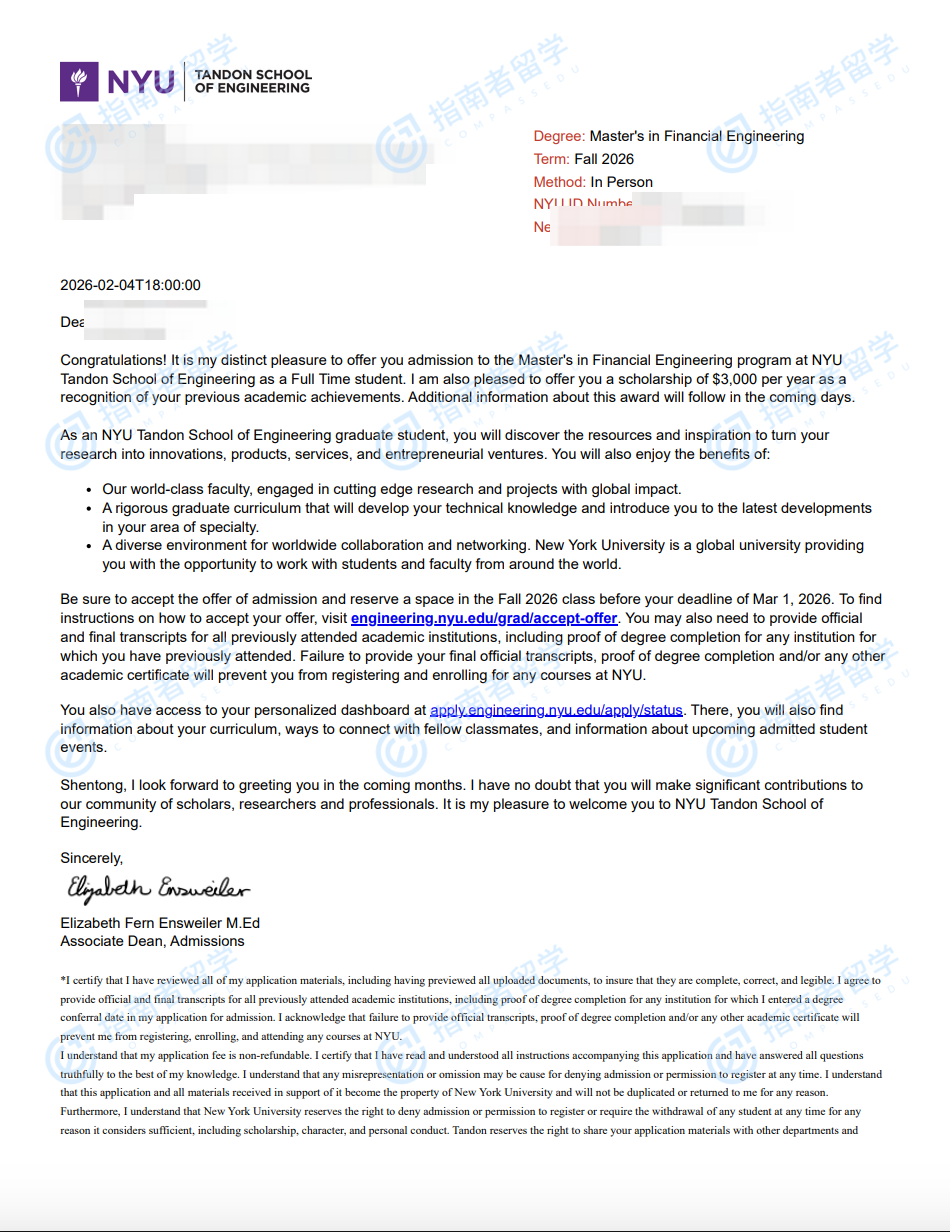 紐約大學(xué)金融工程碩士研究生offer一枚