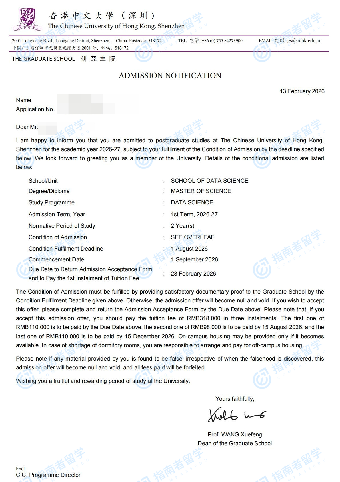 香港中文大學(xué)數(shù)據(jù)科學(xué)理學(xué)碩士(CUHK-Shenzhen)研究生offer一枚