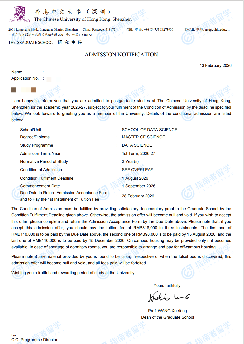 香港中文大學(xué)數(shù)據(jù)科學(xué)理學(xué)碩士(CUHK-Shenzhen)研究生offer一枚