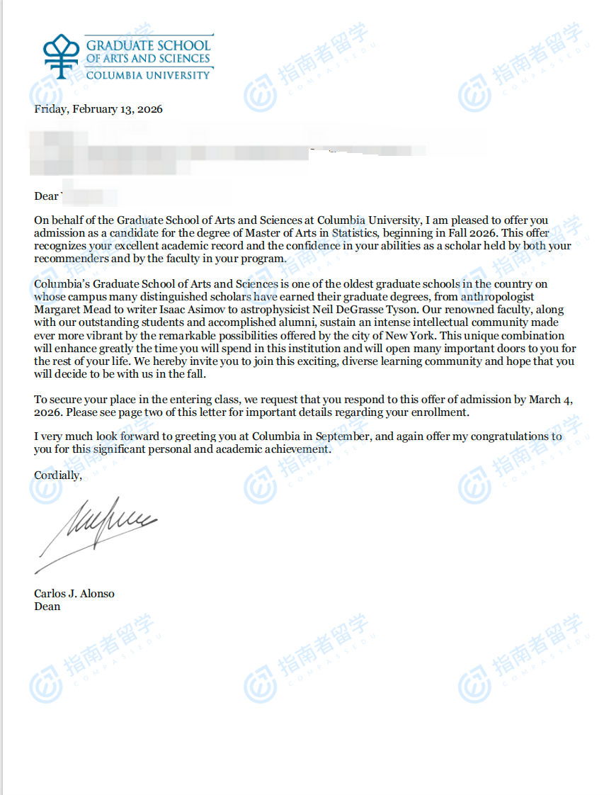 哥倫比亞大學統(tǒng)計學碩士研究生offer一枚