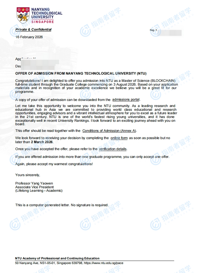 南洋理工大學(xué)區(qū)塊鏈理學(xué)碩士研究生offer一枚