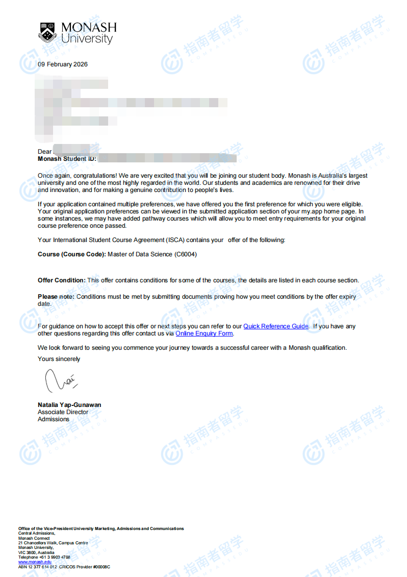 莫納什大學(xué)數(shù)據(jù)科學(xué)碩士研究生offer一枚