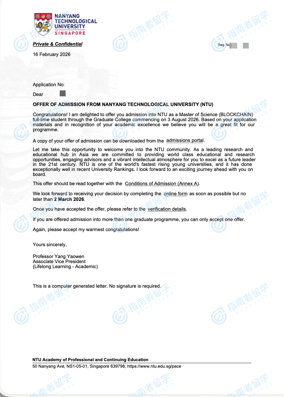南洋理工大學(xué)區(qū)塊鏈理學(xué)碩士研究生offer一枚