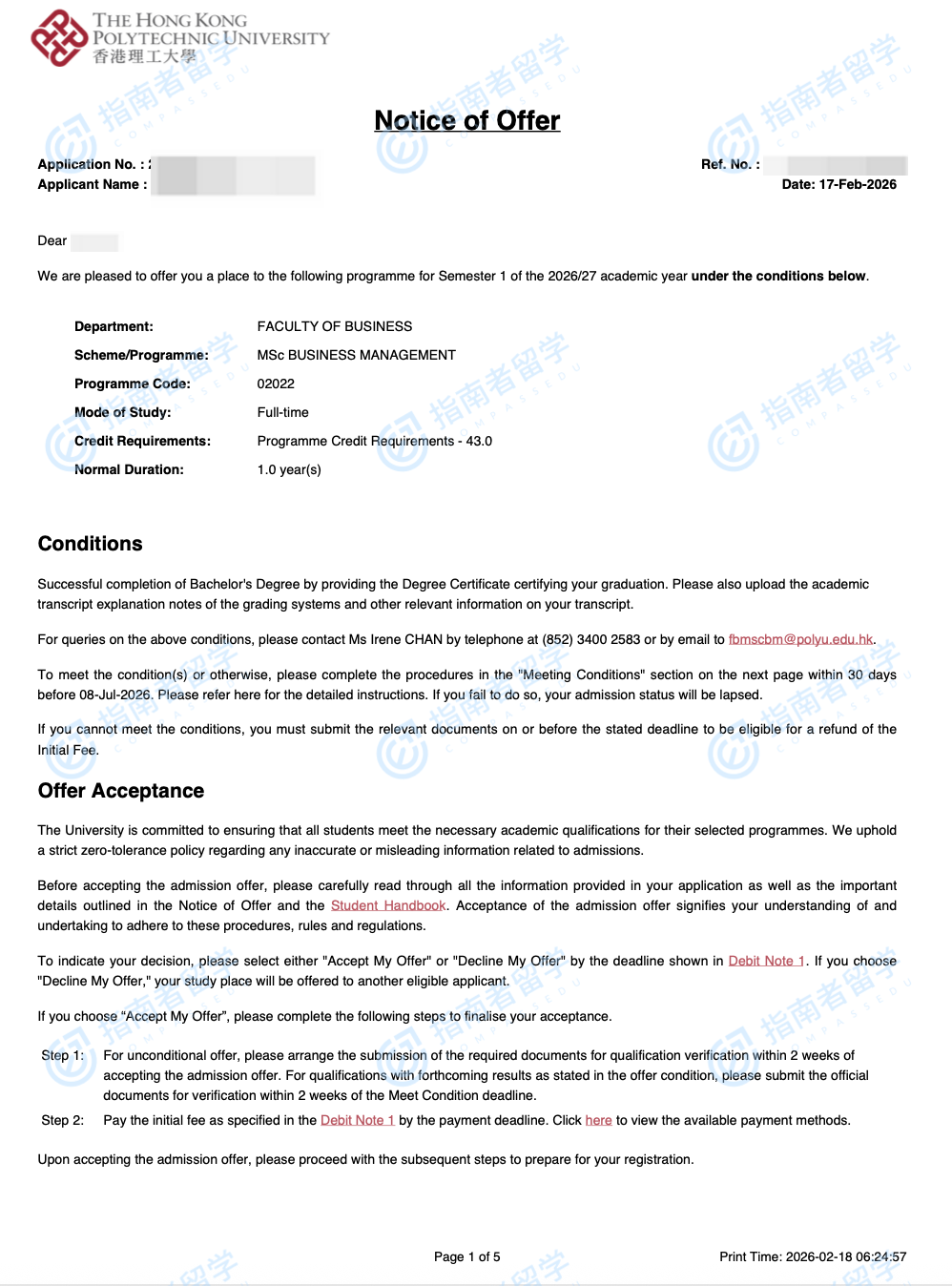 香港理工大學(xué)商業(yè)管理理學(xué)碩士研究生offer一枚