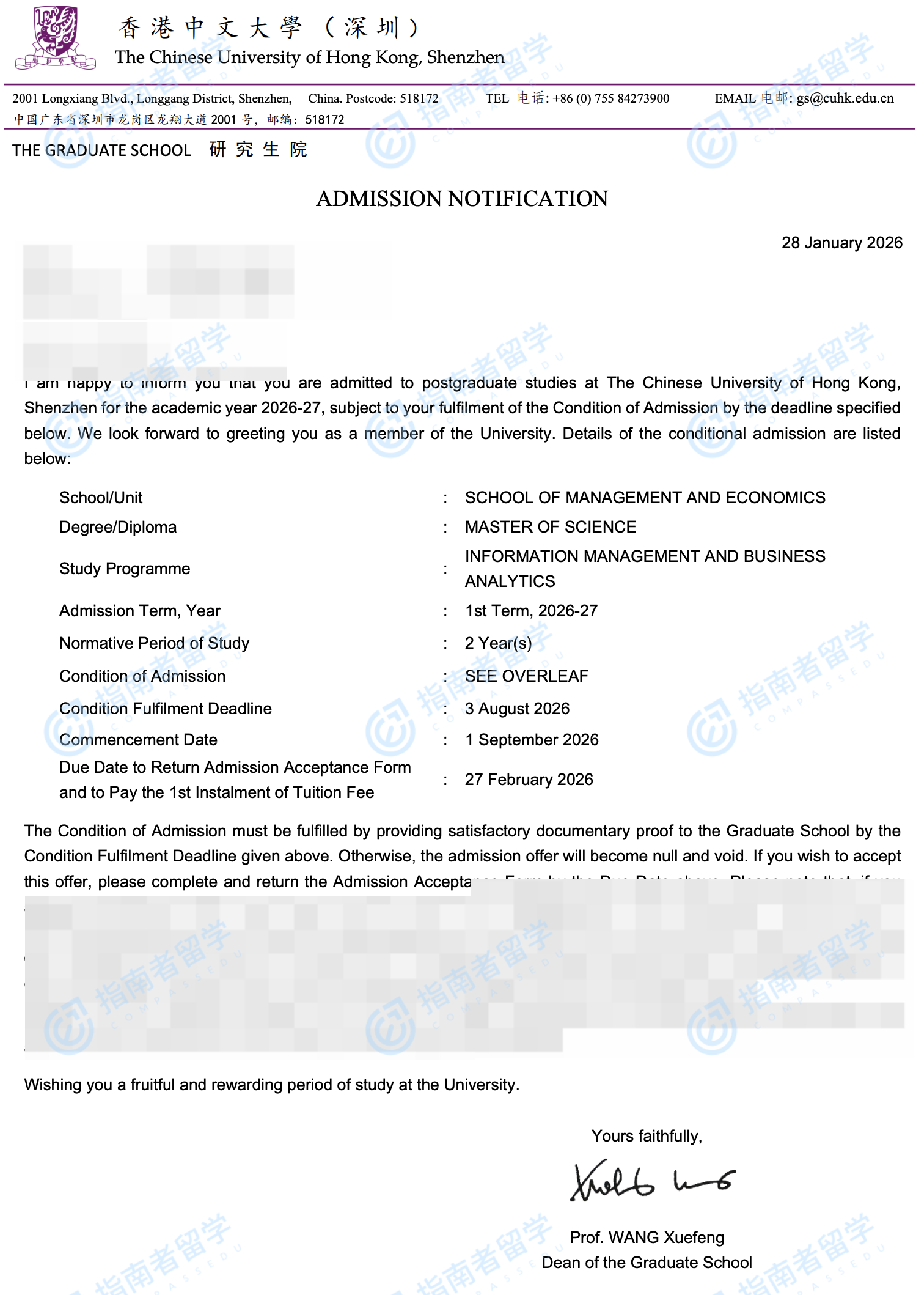 香港中文大學(xué)信息管理 & 商業(yè)分析理學(xué)碩士(CUHK-Shenzhen)研究生offer一枚