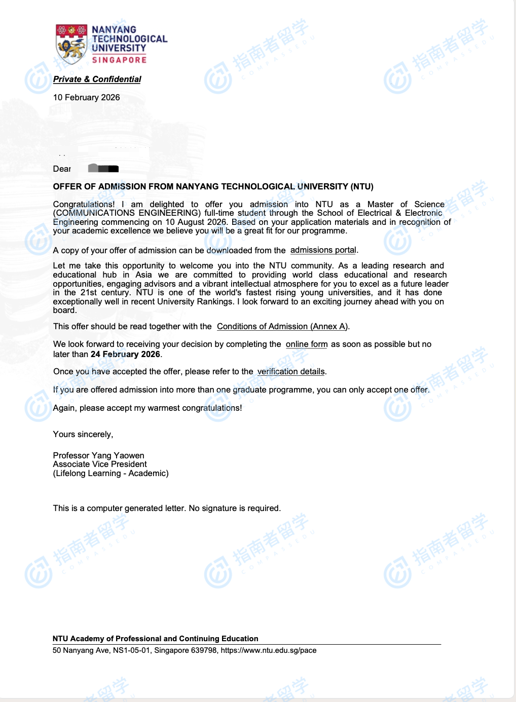 南洋理工大學(xué)通信工程理學(xué)碩士研究生offer一枚