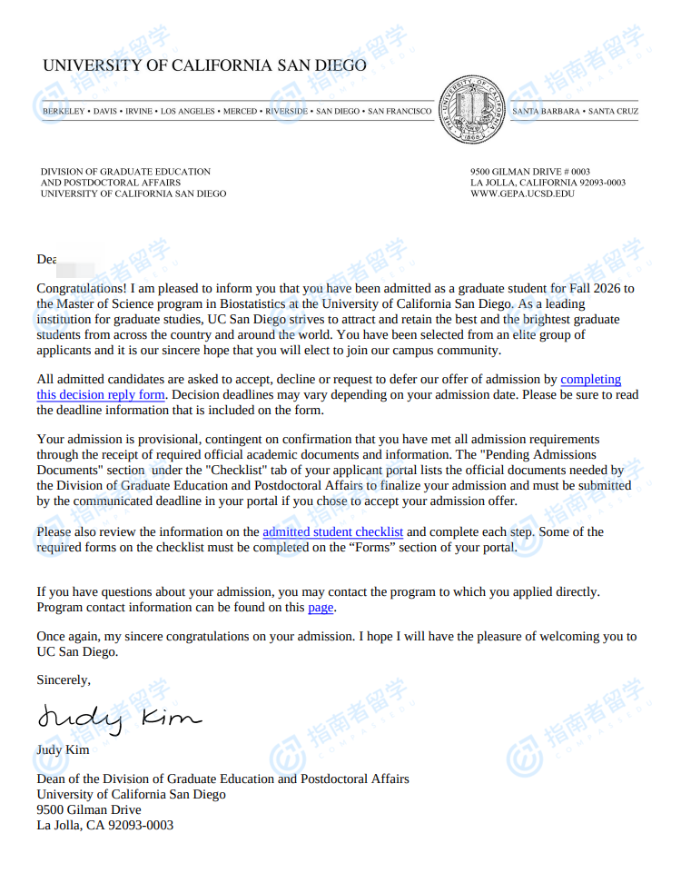 加州大學圣地亞哥分校生物統(tǒng)計碩士研究生offer一枚
