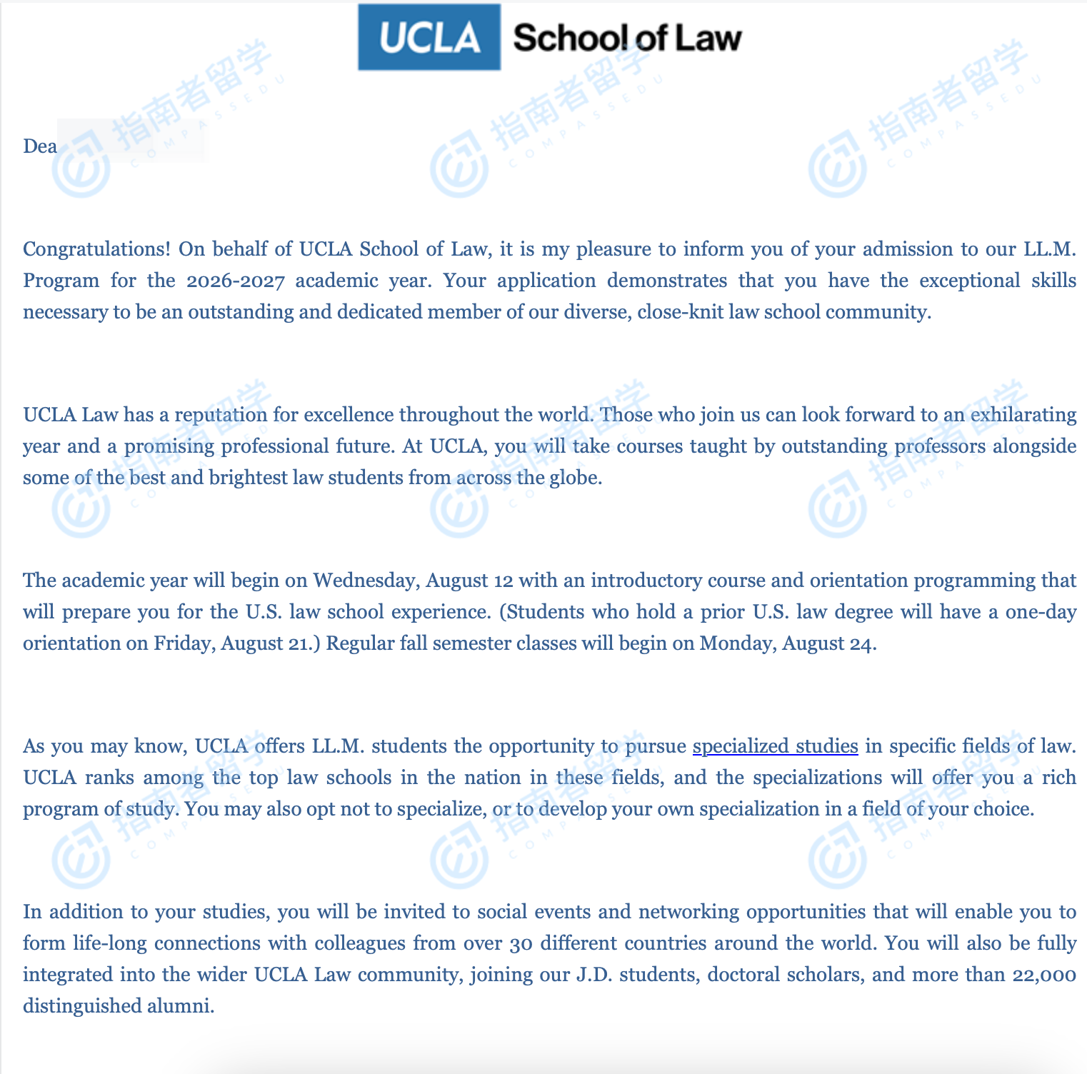 加州大學洛杉磯分校法學碩士研究生offer一枚