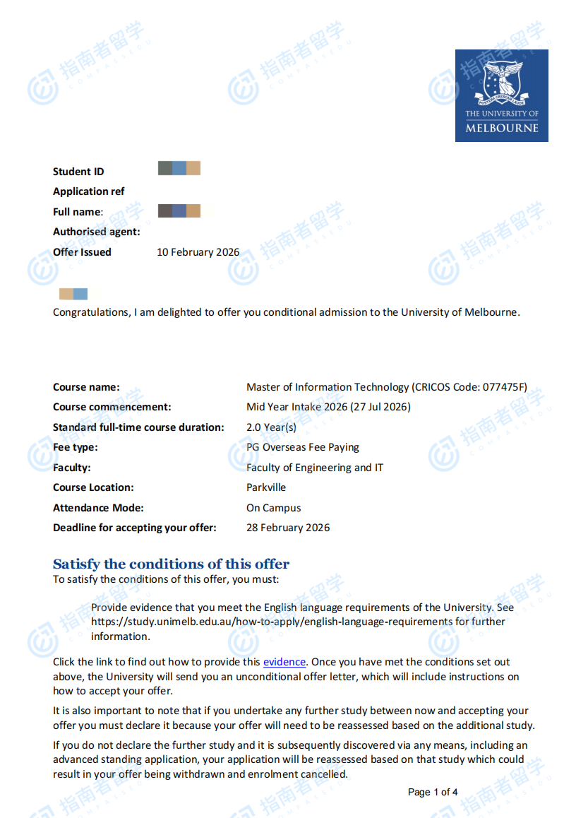 墨爾本大學信息技術(shù)碩士研究生offer一枚