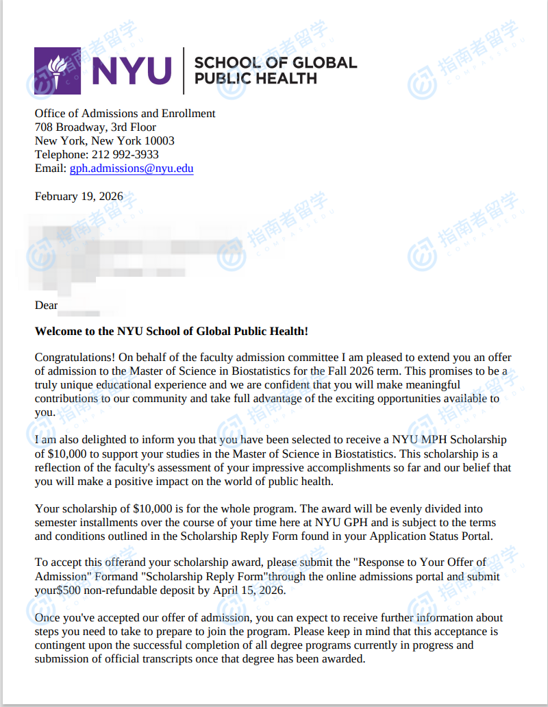 紐約大學(xué)生物統(tǒng)計(jì)碩士研究生offer一枚
