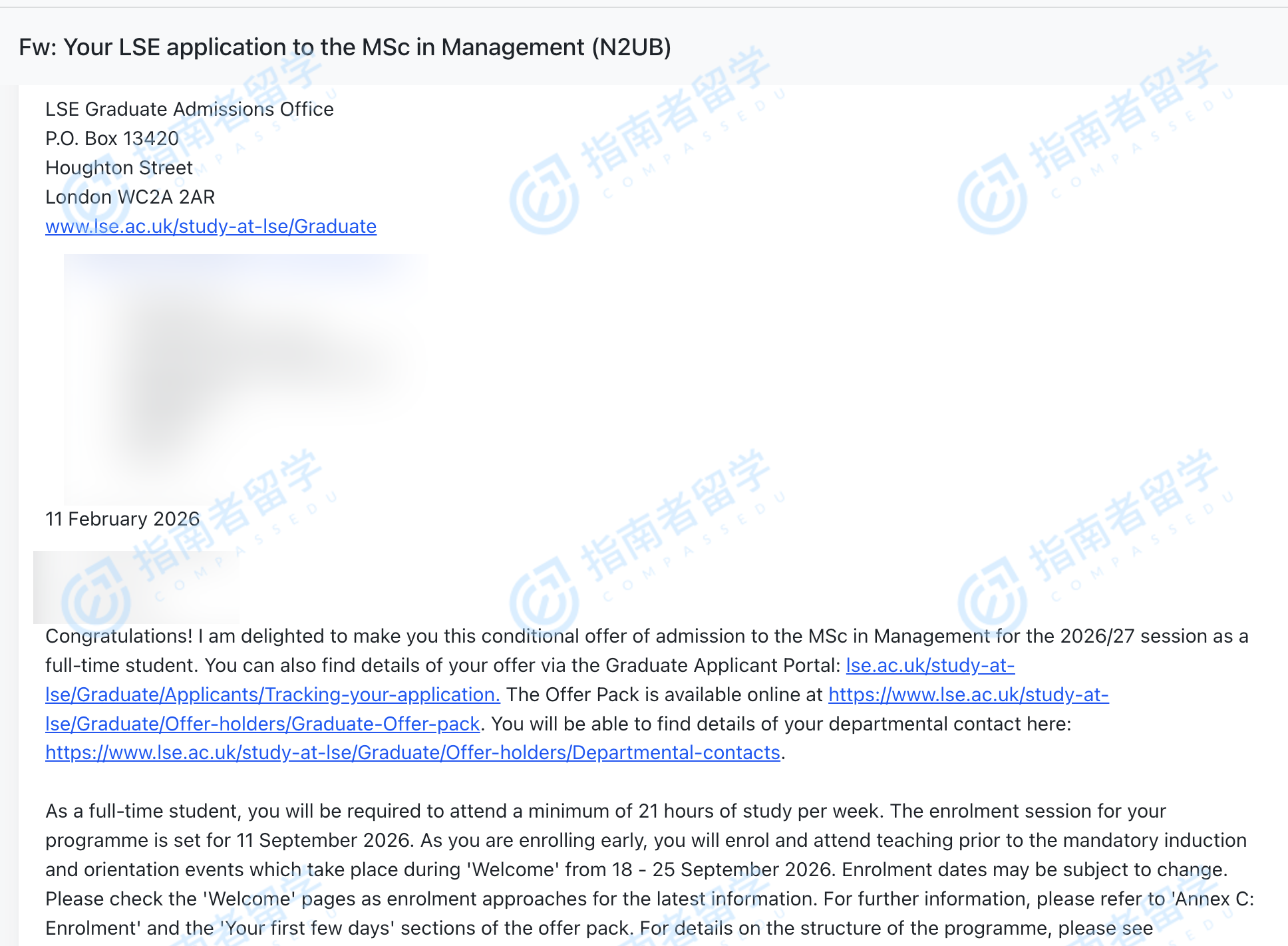 倫敦政治經(jīng)濟學(xué)院全球管理學(xué)碩士研究生offer一枚
