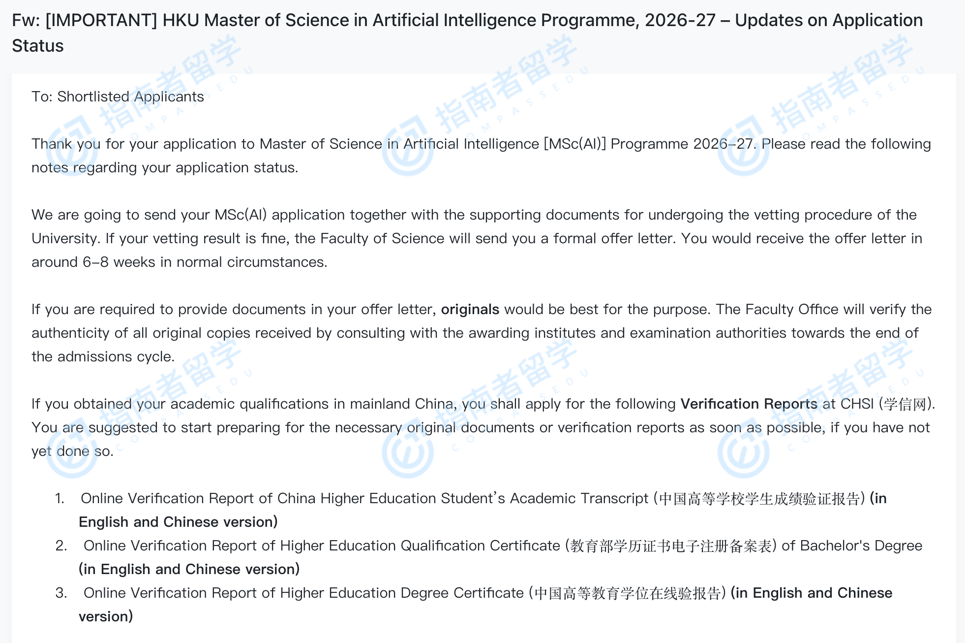 香港大學(xué)人工智能理學(xué)碩士研究生offer一枚