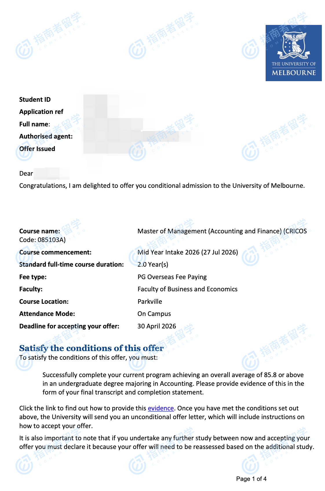 墨爾本大學(xué)管理學(xué)碩士(會(huì)計(jì)與金融)研究生offer一枚
