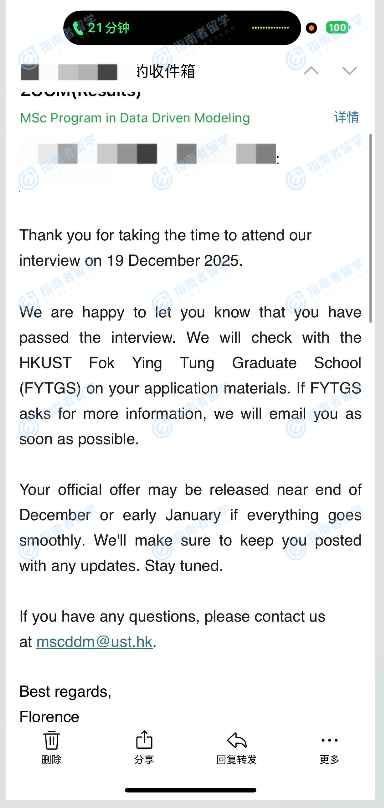 香港科技大學數(shù)據(jù)驅動建模理學碩士研究生offer一枚