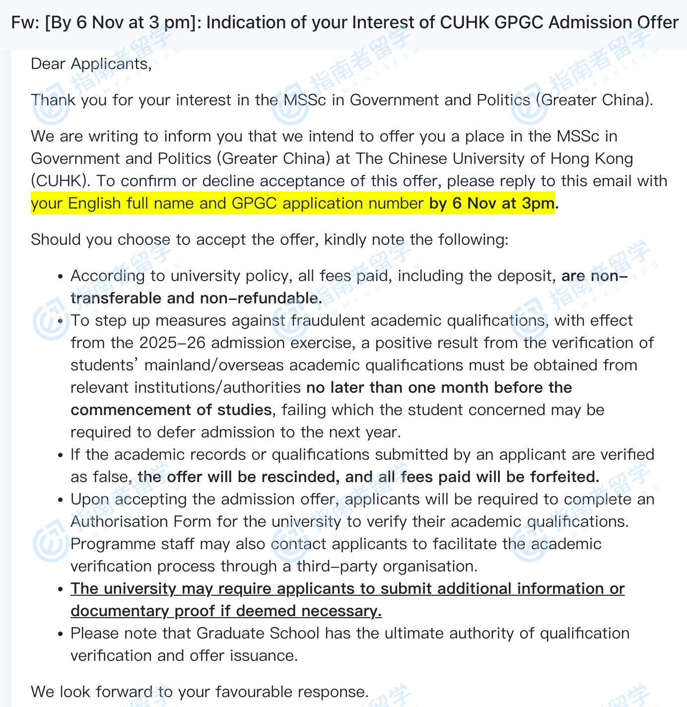香港中文大學(xué)大中華地區(qū)的政府與政治社會(huì)科學(xué)碩士研究生offer一枚