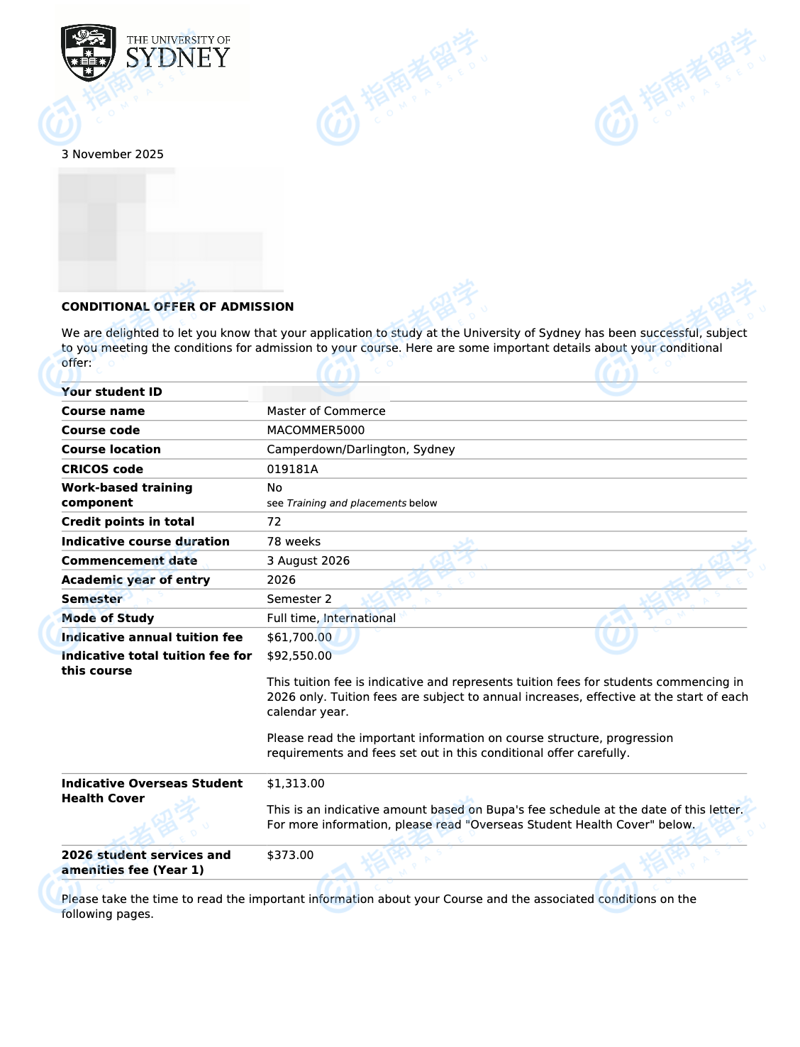 悉尼大學(xué)商學(xué)碩士研究生offer一枚