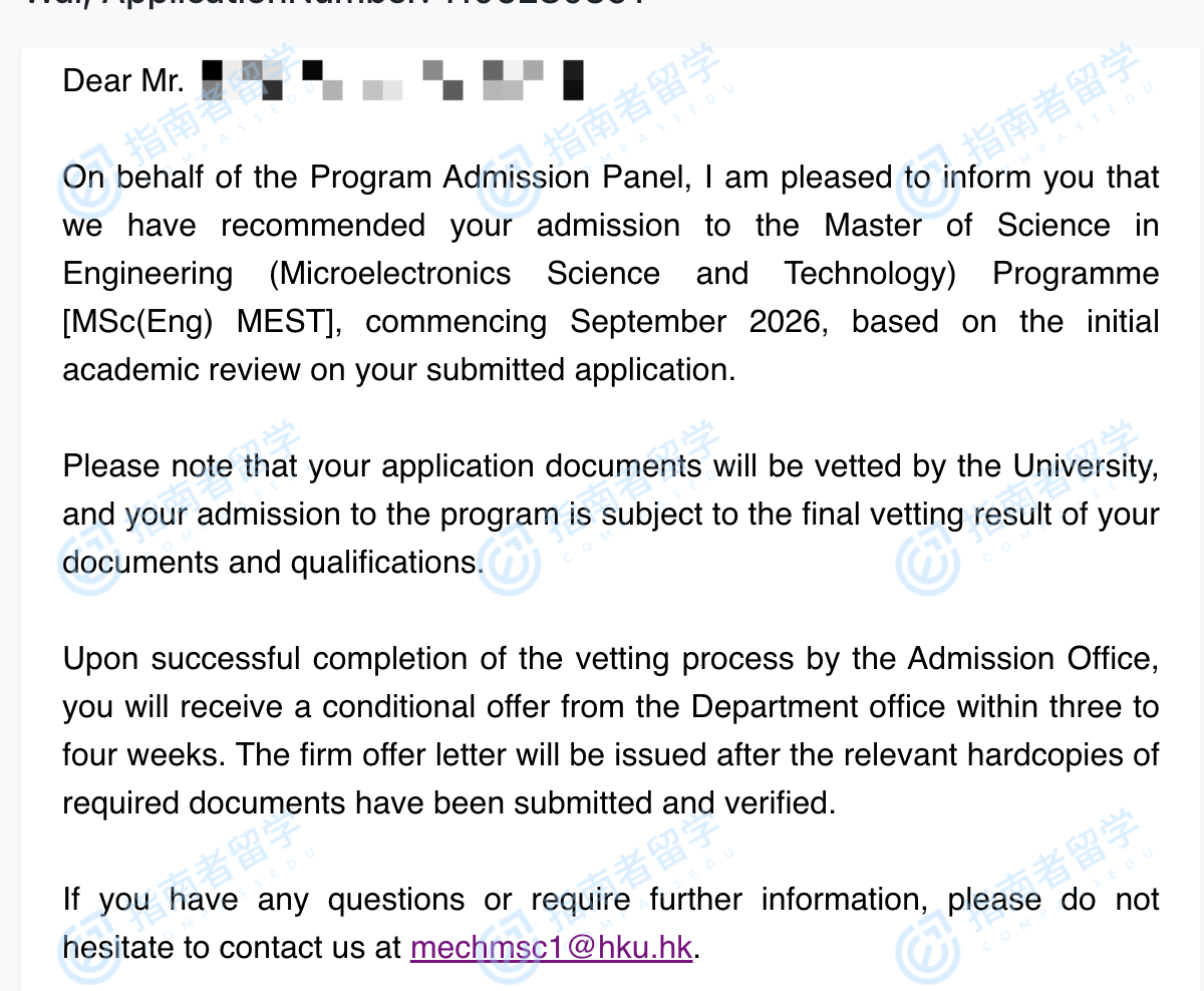 香港大學(xué)微電子科學(xué)與技術(shù)(工程)理學(xué)碩士研究生offer一枚