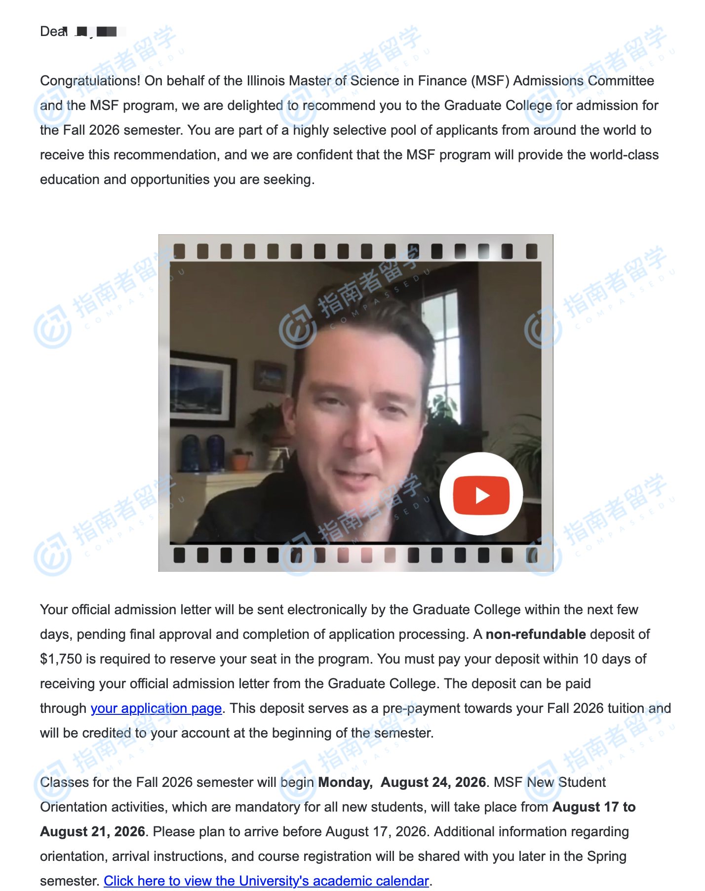 伊利諾伊大學(xué)香檳分校金融碩士研究生offer一枚