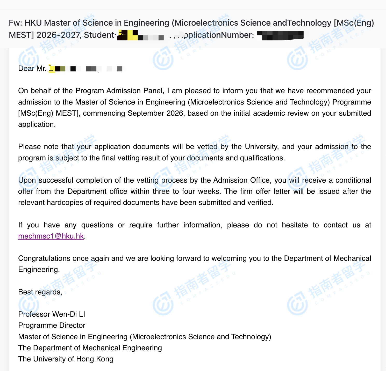 香港大學微電子科學與技術(shù)(工程)理學碩士研究生offer一枚
