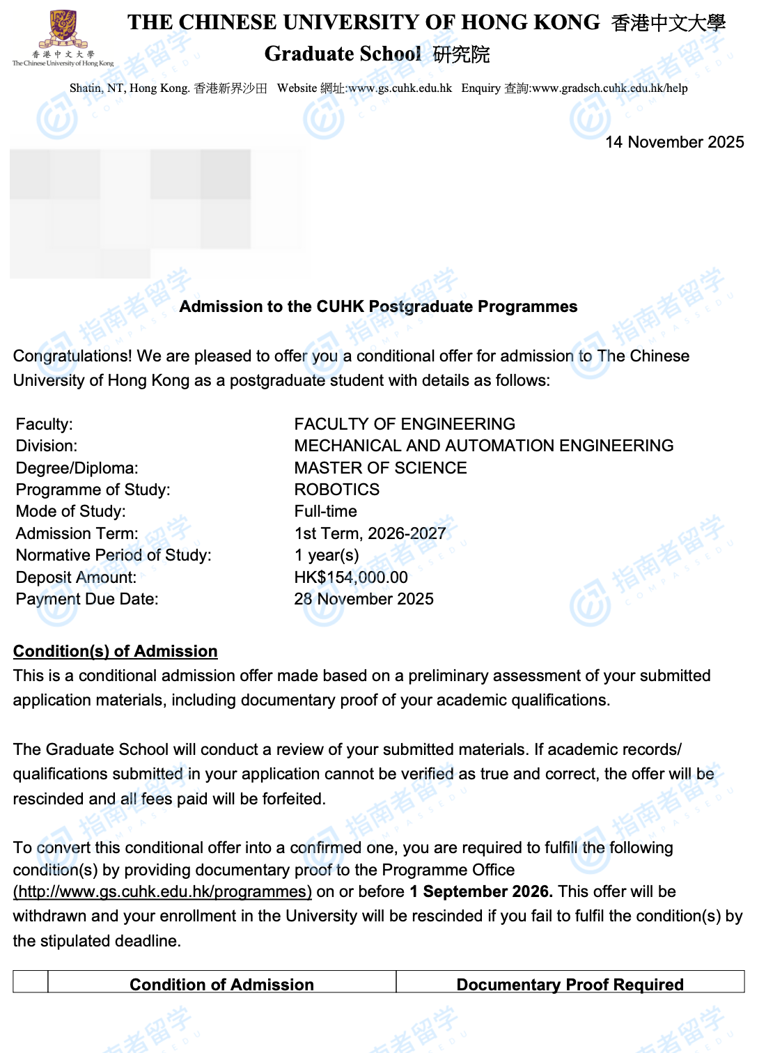 香港中文大學基因組學與生物信息理學碩士研究生offer一枚