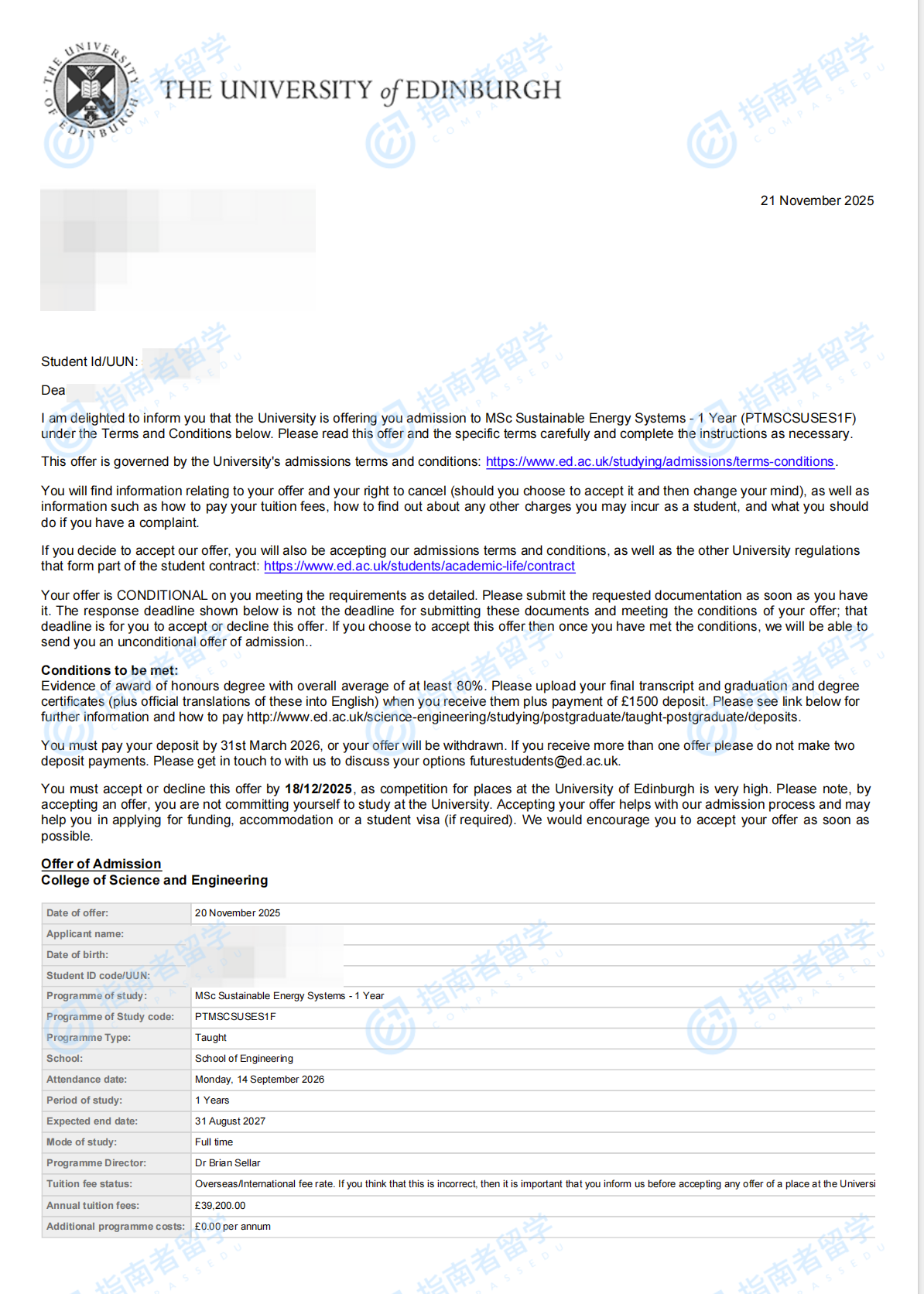 愛(ài)丁堡大學(xué)可持續(xù)能源系統(tǒng)理學(xué)碩士研究生offer一枚