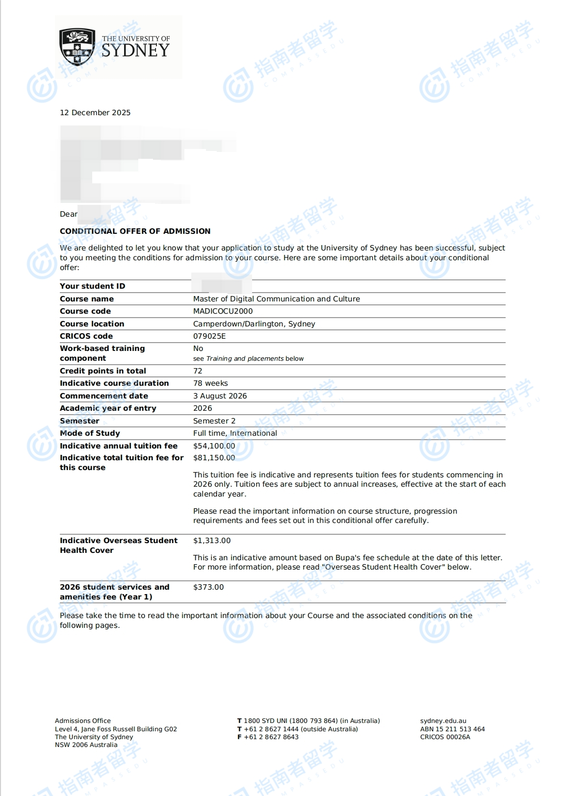 悉尼大學數(shù)字傳播與文化碩士研究生offer一枚
