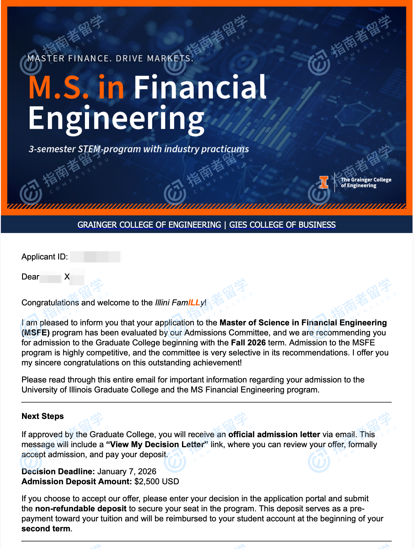 伊利諾伊大學(xué)香檳分校金融工程碩士研究生offer一枚