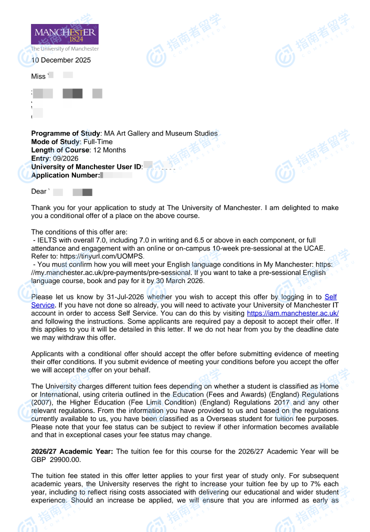 曼徹斯特大學(xué)創(chuàng)意與文化產(chǎn)業(yè)文學(xué)碩士研究生offer一枚