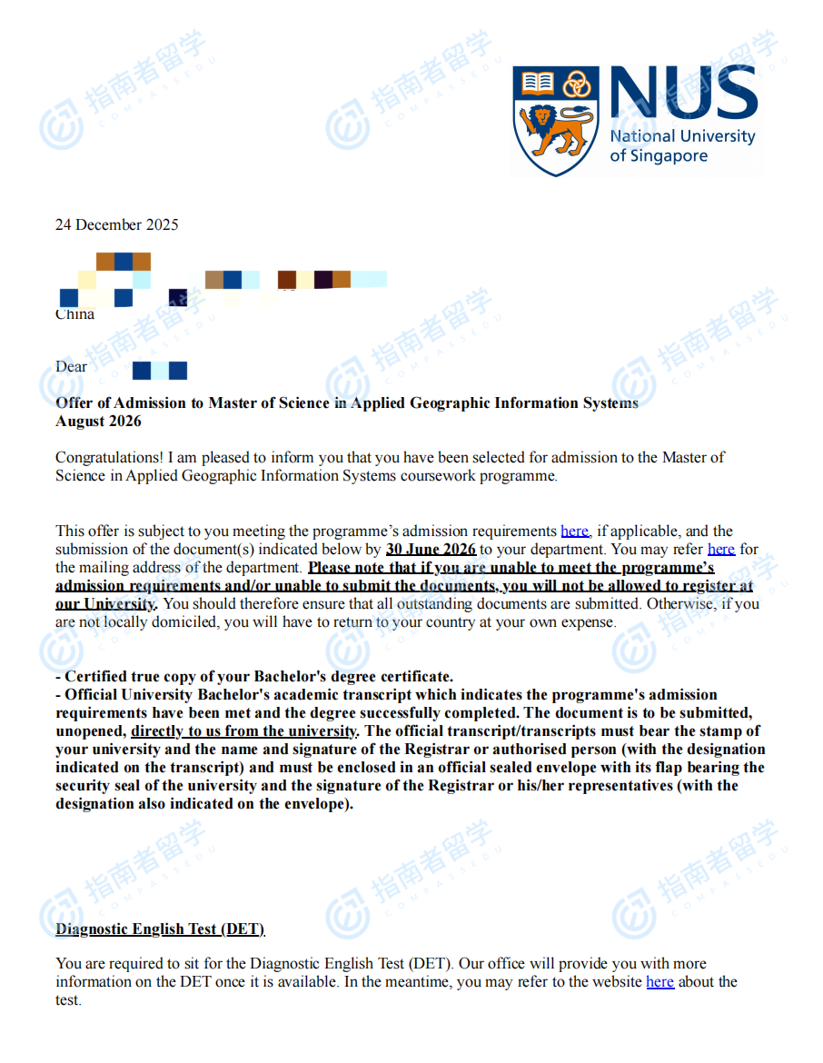 新加坡國(guó)立大學(xué)應(yīng)用地理信息系統(tǒng)理學(xué)碩士研究生offer一枚